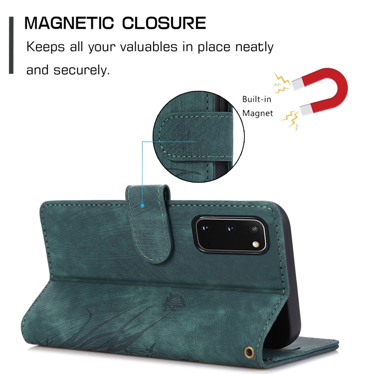 Funda para Teléfono Samsung Galaxy S20 Cuero Relieve Mariposa Orquídea (Verde)