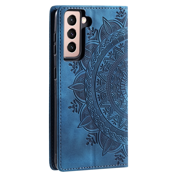 Funda para Samsung Galaxy S21 5G Totem Cuero Magnética En Relieve (Azul)