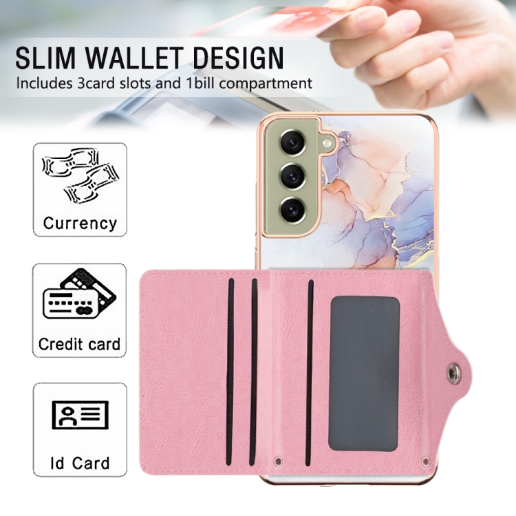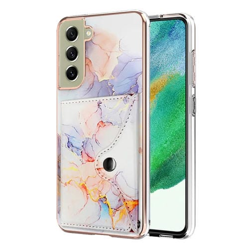 Estuche para Teléfono Samsung Galaxy S21 FE 5G con Ranura para Tarjeta IMD Patrón Mármol (Blanco)
