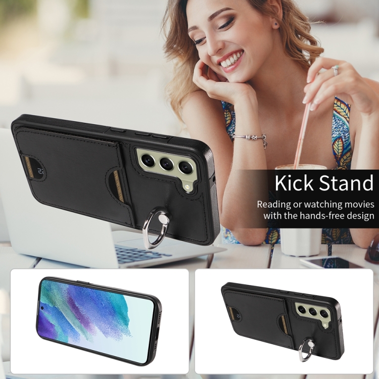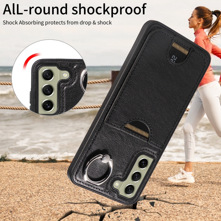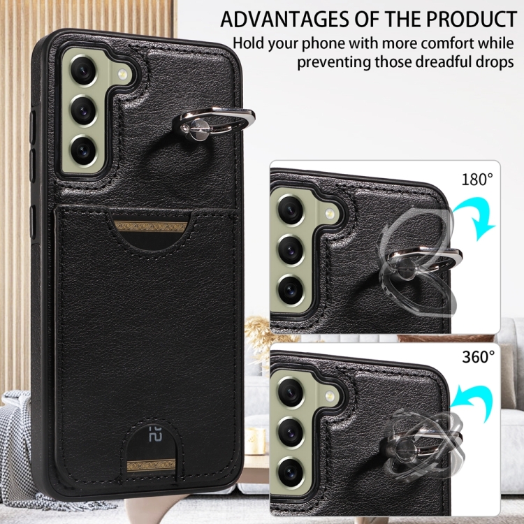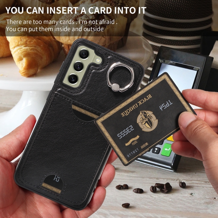 Funda para Teléfono Samsung Galaxy S21 FE 5G con Soporte Anillo y Ranura para Tarjeta (Negro)