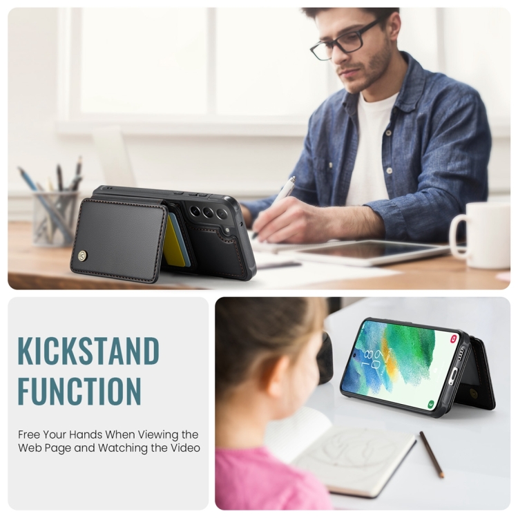 Estuche para teléfono Samsung Galaxy S21 FE 5G Jeehood J05 Cuero Rfid Magnético Empresarial (Negro)
