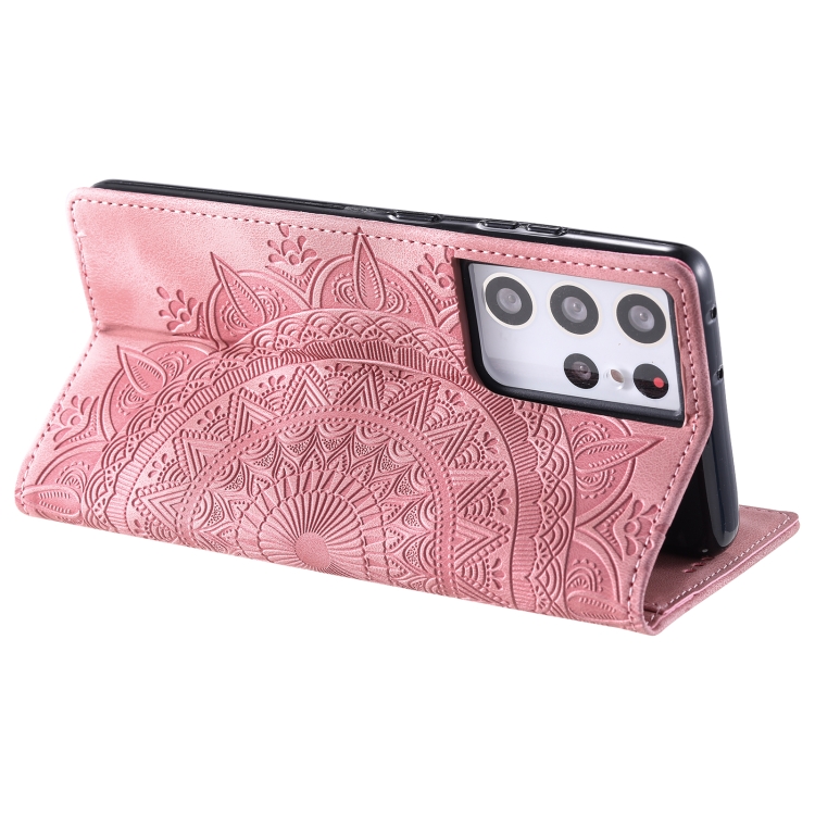 Estuche para Teléfono Samsung Galaxy S21 Ultra 5G Cuero Magnético Relieve Tótem (Oro Rosa)