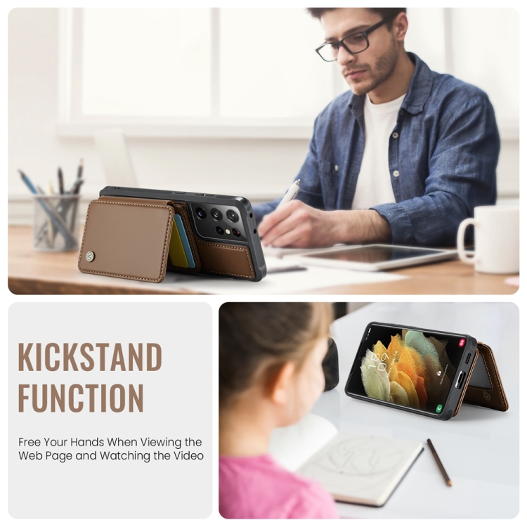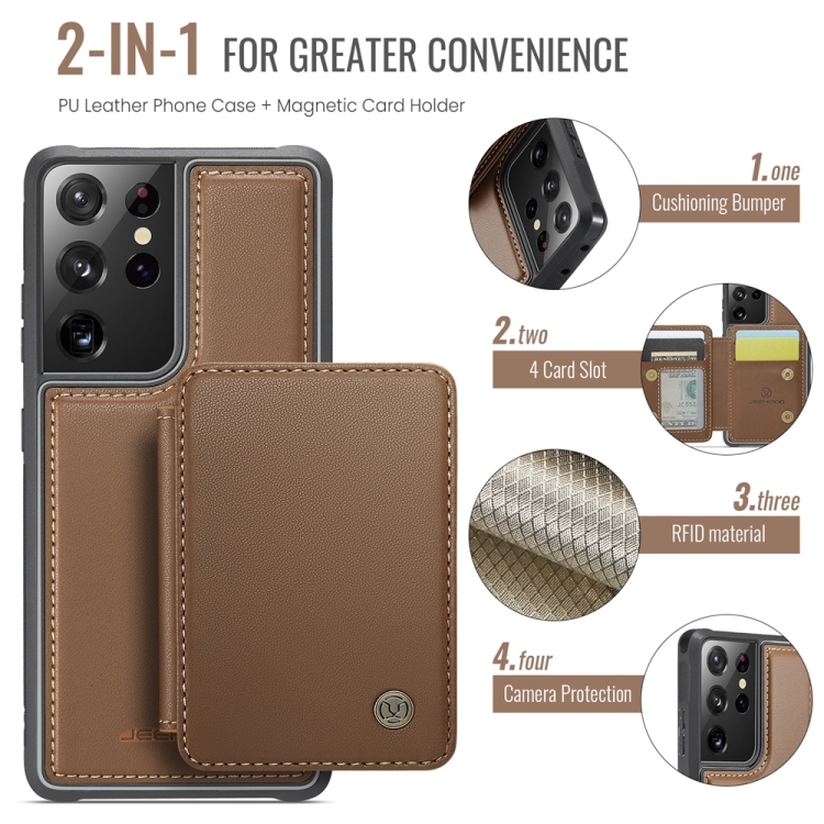 Estuche para Teléfono Samsung Galaxy S21 Ultra 5G Jeehood J05 Cuero Rfid Magnético Empresarial (Marrón)