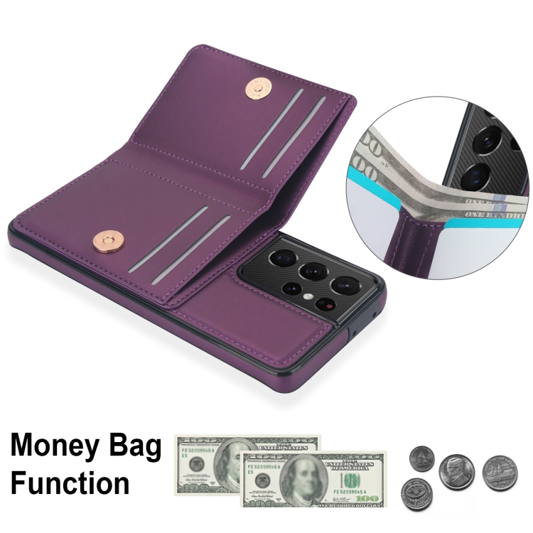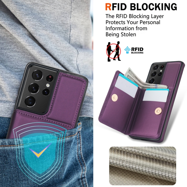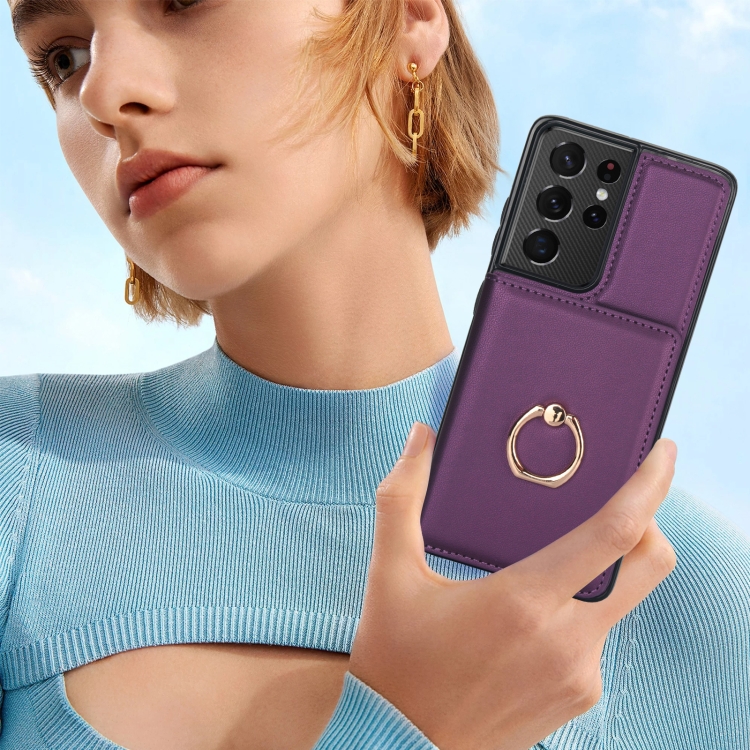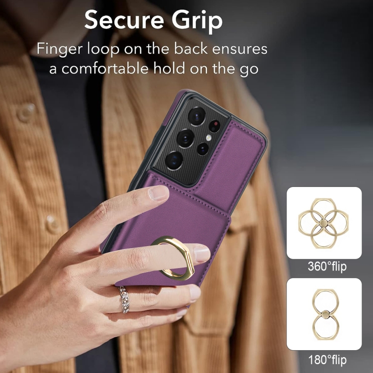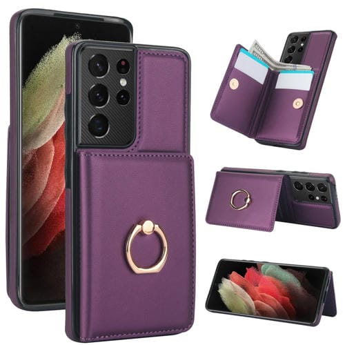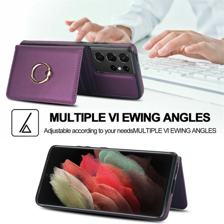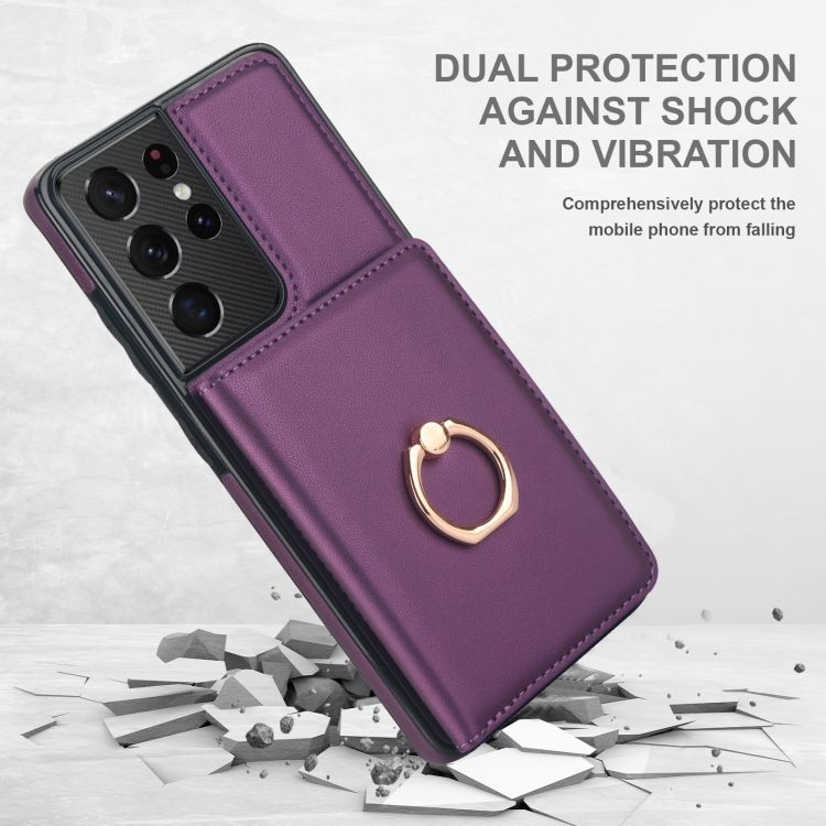 Estuche para teléfono Samsung Galaxy S21 Ultra 5G Rfid Tarjeta Antirrobo con soporte para anillo (Púrpura Oscuro)