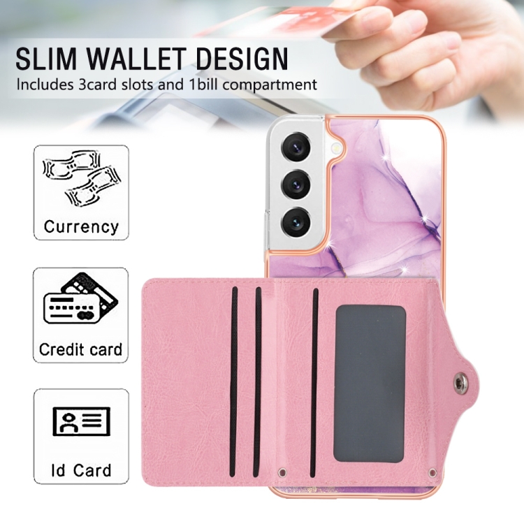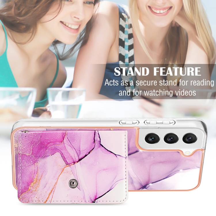Estuche para Teléfono Samsung Galaxy S22 + 5G con Ranura para Tarjeta Imd y Patrón de Mármol (Oro Rosa Púrpura)