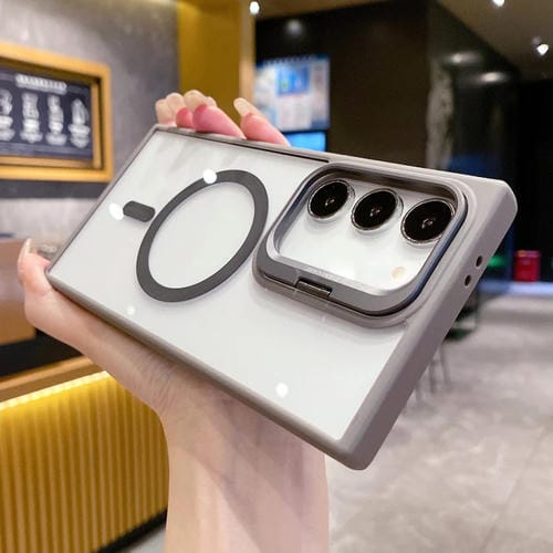 Estuche para Teléfono Samsung Galaxy S23 5G Magsafe Soporte Marco de Lente Metal (Gris)