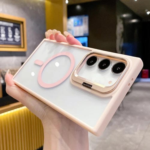 Estuche para Teléfono Samsung Galaxy S23 5G Magsafe con Soporte y Marco de Lente de Metal (Rosa)
