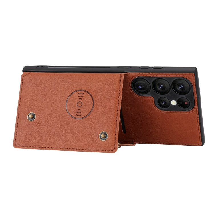 Estuche Magnético para Teléfono Samsung Galaxy S23 Ultra 5G con Doble Hebilla (Marrón)