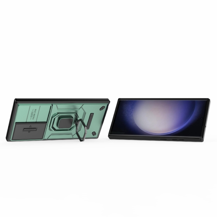 Estuche para Teléfono Samsung Galaxy S23 Ultra 5G Sliding Camshield TPU + PC a Prueba de Golpes con Soporte (Verde)