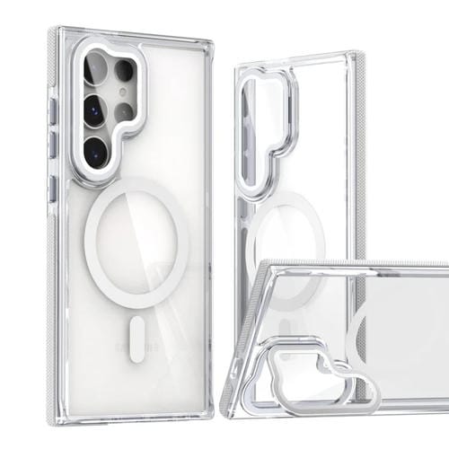 Estuche para Teléfono Samsung Galaxy S24 Ultra 5G Híbrido Acrílico Transparente Doble Color con Soporte (Blanco)