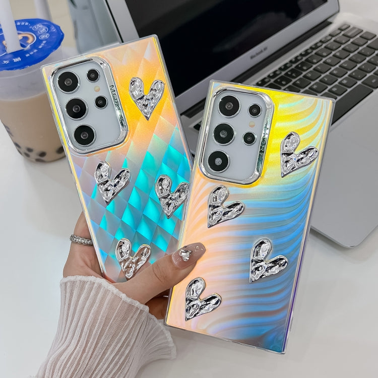 Caja de teléfono TPU Samsung Galaxy S24 Ultra 5G galvanoplastia textura láser 4 corazones (Hilo de plumas)