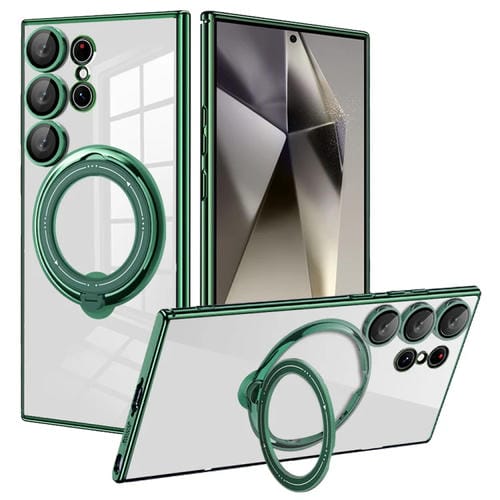 Estuche para Teléfono Samsung Galaxy S24 Ultra Galvanoplastia Magsafe Soporte Rotación 360 Grados (Verde Oscuro)