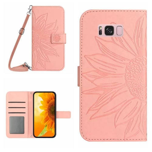 Funda Flip de Cuero para Samsung Galaxy S8 Skin Feel Sun Flower Pattern con Cordón (Rosa)