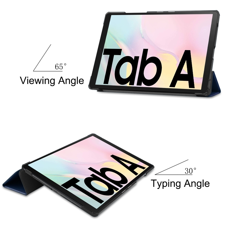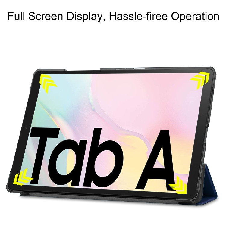 Funda de Cuero Samsung Galaxy Tab A7 2020 T500 con Tapa Horizontal Soporte Tres Plegables Función Suspensión (Azul Oscuro)