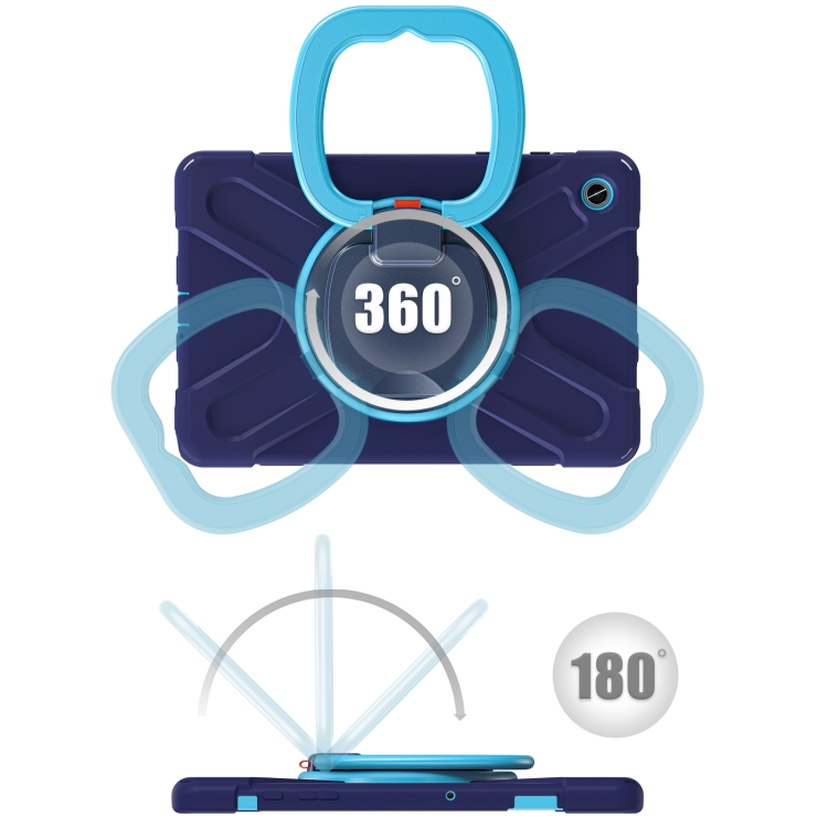 Funda híbrida de silicona para Samsung Galaxy Tab A9 con soporte y correa para el hombro (Azul Marino + Azul)