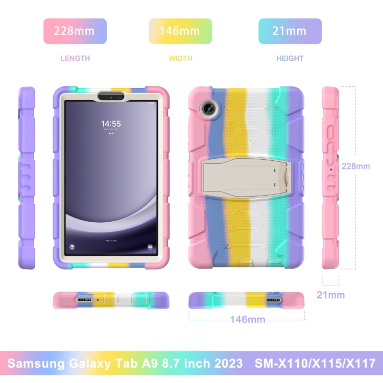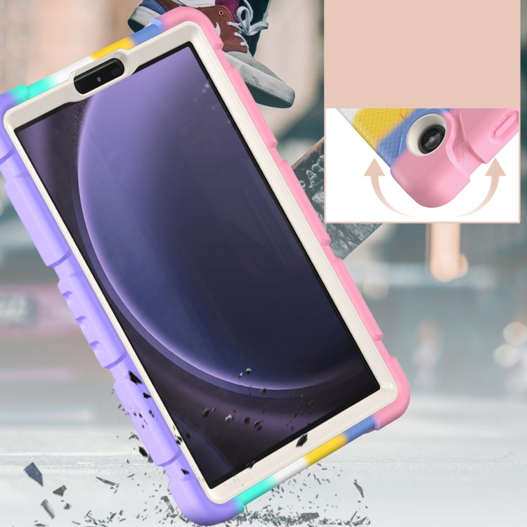 Marco de Pantalla de Protección + Funda Silicona para Samsung Galaxy Tab A9 Combinada a Prueba de Golpes con Soporte (Rosa)