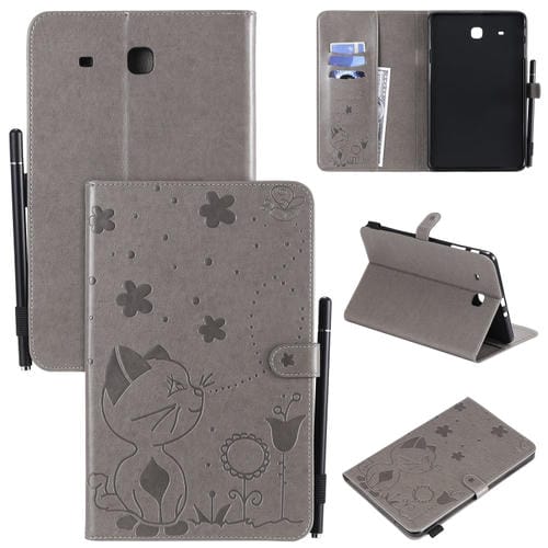 Funda Protectora Samsung Galaxy Tab E9.6 T560 Cuero con Soporte y Ranuras (Gris)