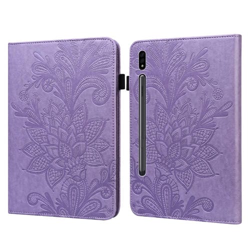 Funda de Cuero Flip Samsung Galaxy Tab S8 S7 SM-T876B con Soporte y Ranuras para Tarjetas (Púrpura)
