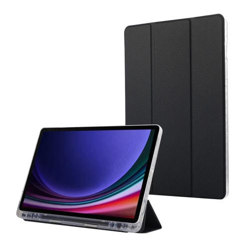 Funda para Tablet Samsung Galaxy Tab S9 / S9 FE de Cuero 3 Pliegues Acrílico Transparente Fibra de Carbono (Azul Oscuro)
