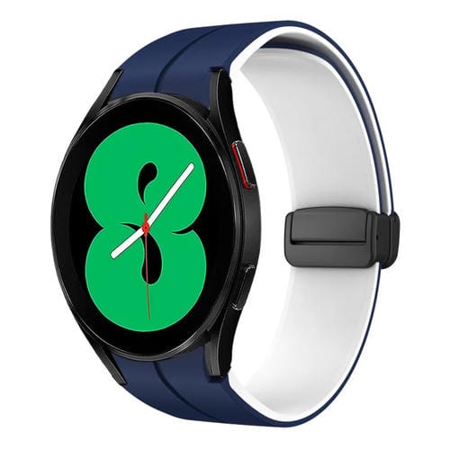 Correa de Silicona para Samsung Galaxy Watch 4 44mm con Hebilla Plegable Magnética Dos Colores (Azul Medianoche + Blanco)