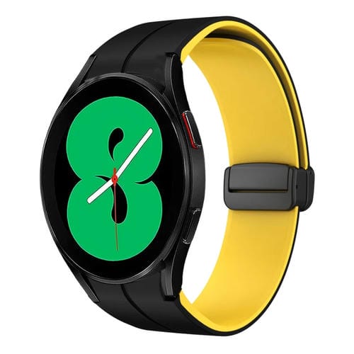 Correa de Silicona para Samsung Galaxy Watch 4 44mm con Hebilla Plegable Magnética Dos Colores (Negro + Amarillo)