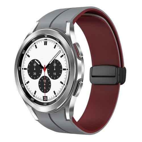 Correa para Samsung Galaxy Watch 4 Classic 42mm de Silicona con Hebilla Plegable Magnética (Gris + Rojo Vino)