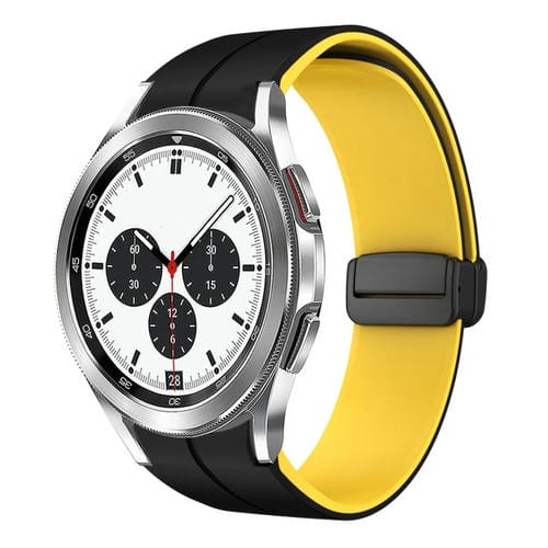Correa de Silicona para Samsung Galaxy Watch 4 Classic 42mm con Hebilla Plegable Magnética (Negro + Amarillo)