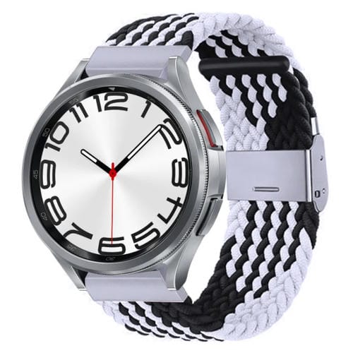 Banda de Reloj para Samsung Galaxy Watch 6/6 Clásica con Hebilla Metal Trenzado Nylon (Z Negro Blanco)