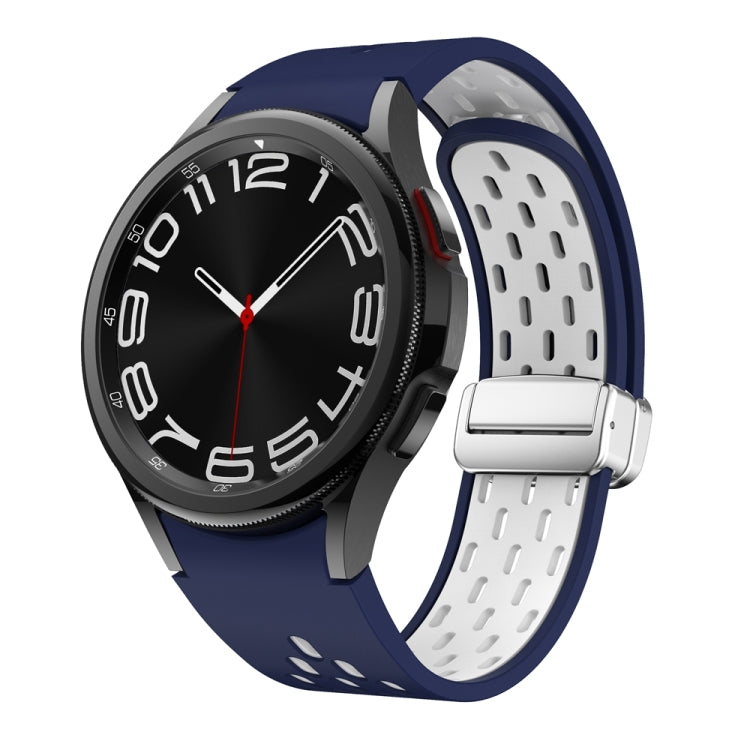 Correa para Samsung Galaxy Watch 6/6 Clásica con Hebilla Plateada Plegable Magnética (Azul Medianoche, Blanco)