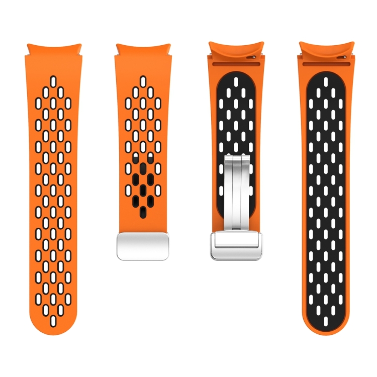 Correa de Reloj para Samsung Galaxy Watch 6/6 Clásica Hebilla Plateada Plegable Magnética (Naranja Negro)