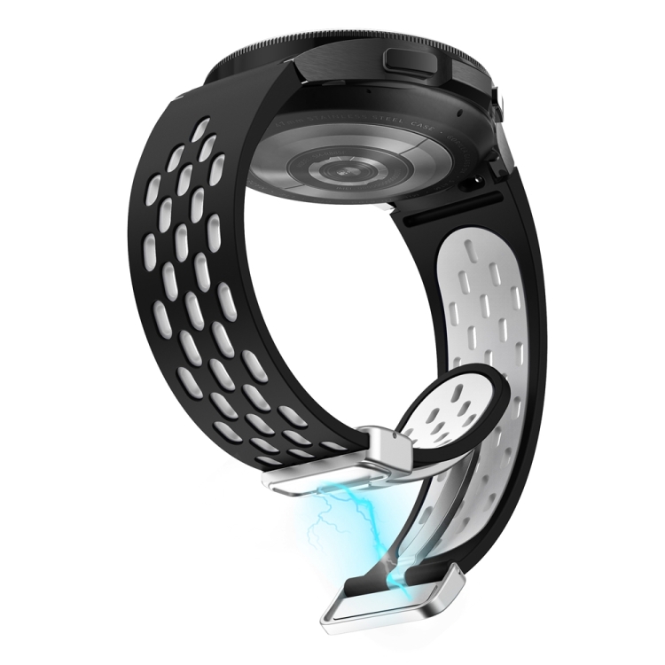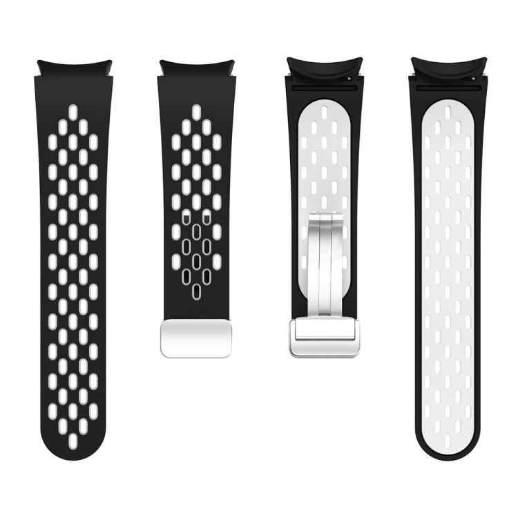 Correa de Reloj clásica para Samsung Galaxy Watch 6/6 con hebilla plateada plegable magnética de dos colores (Negro Blanco)
