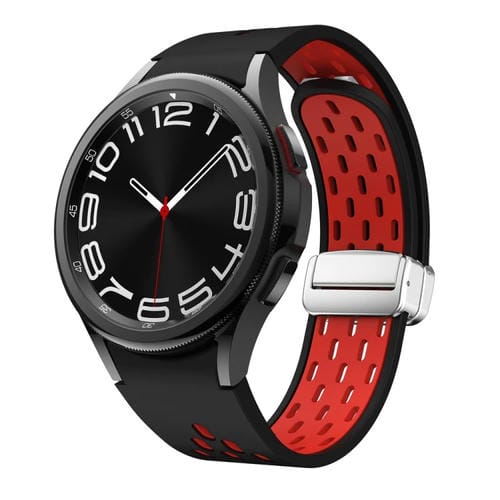 Correa de Reloj Samsung Galaxy Watch 6/6 Clásica con Hebilla Plegable Magnética (Negro Rojo)