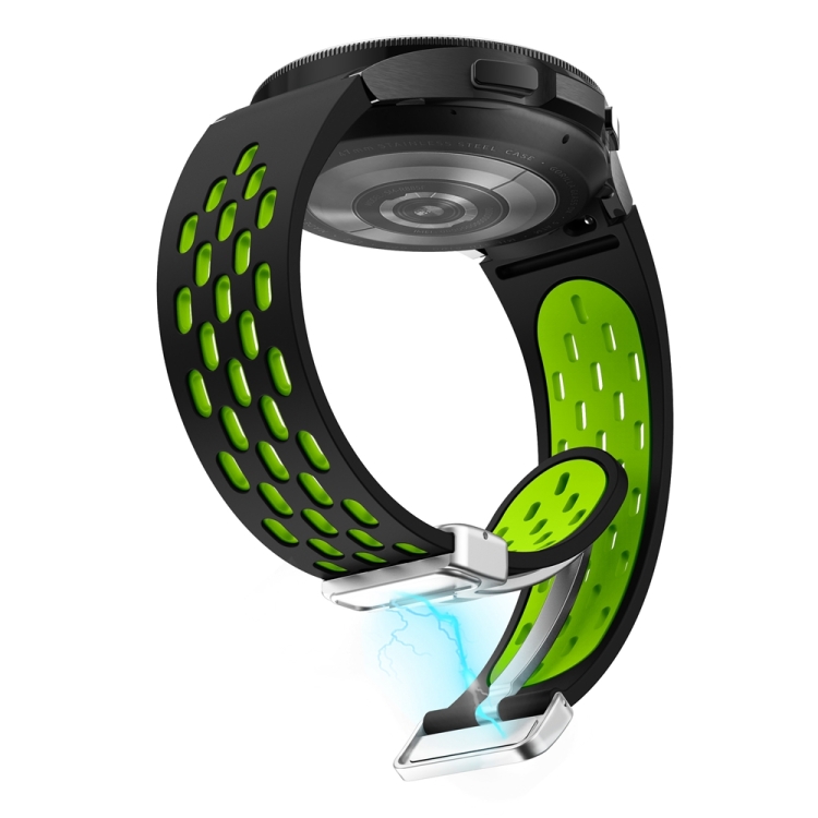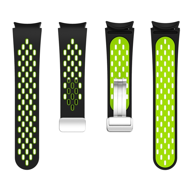 Correa de Reloj Clásica para Samsung Galaxy Watch 6/6 con Hebilla Plateada Plegable Magnética (Negro Verde)