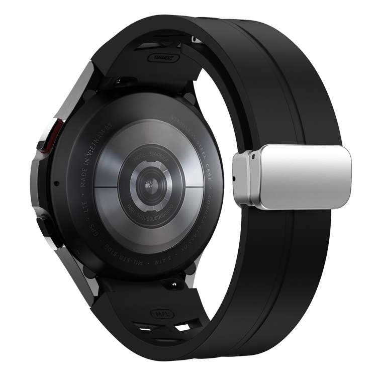 Correa de Silicona para Samsung Galaxy Watch FE 40mm Richard con Hebilla Plateada Plegable Magnética (Negro)
