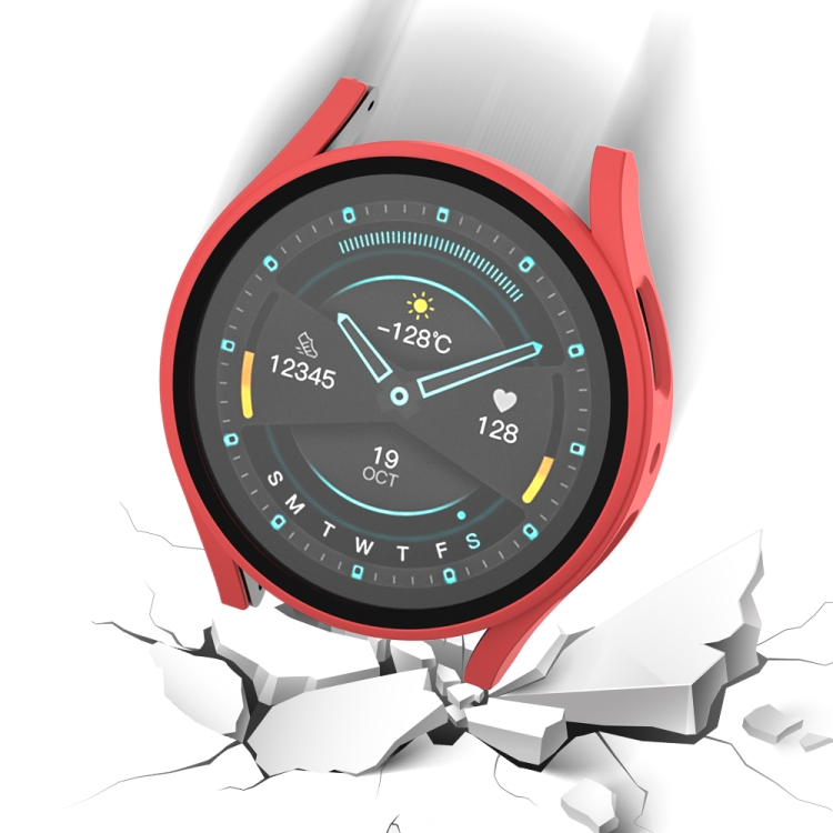 Funda para Samsung Galaxy Watch5 Frosted PC con Estuche Protector y Película Templada (Rojo)