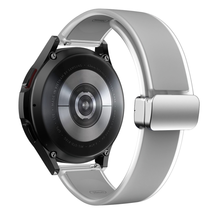 Correa de Silicona para Samsung Galaxy Watch6/5/4 con Hebilla Plateada Magnética Translúcida (Gris Claro)