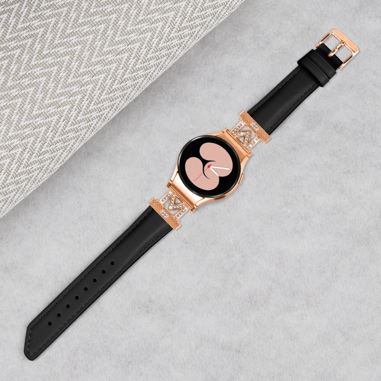 Correa de Cuero Sarga en Forma de D para Samsung Galaxy Watch6/6 Classic M (Oro Rosa Negro)