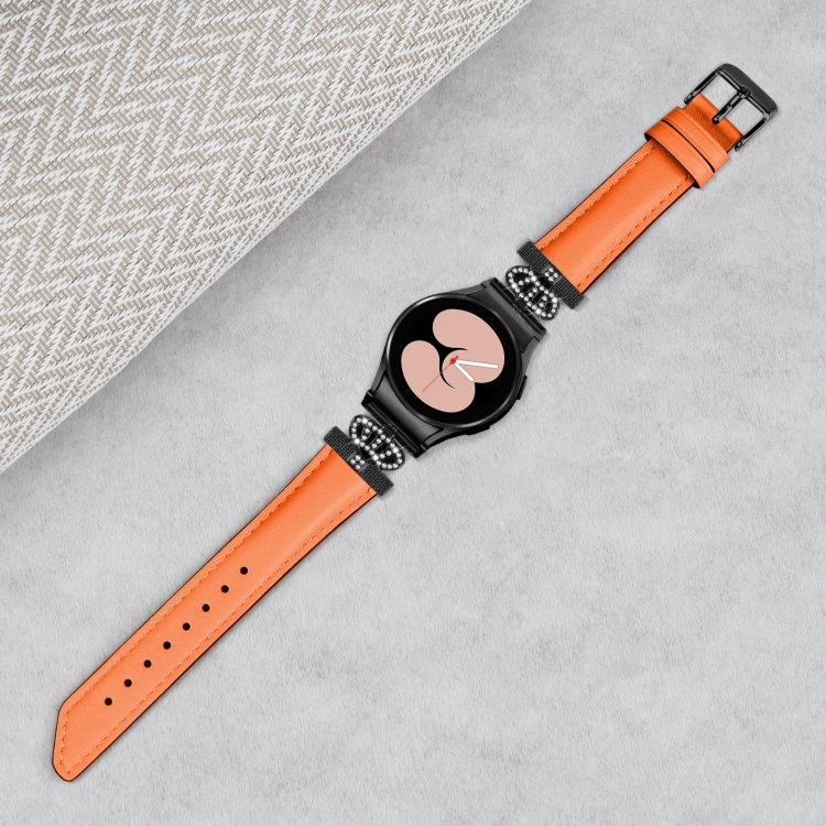 Correa de Cuero para Samsung Galaxy Watch6/6 Sarga en Forma de D con Corona Clásica (Negro Naranja)