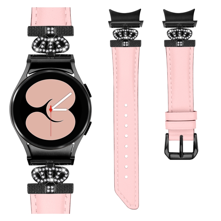 Correa de Cuero para Samsung Galaxy Watch6/6 Sarga en Forma de D con Corona Clásica (Negro Rosa)