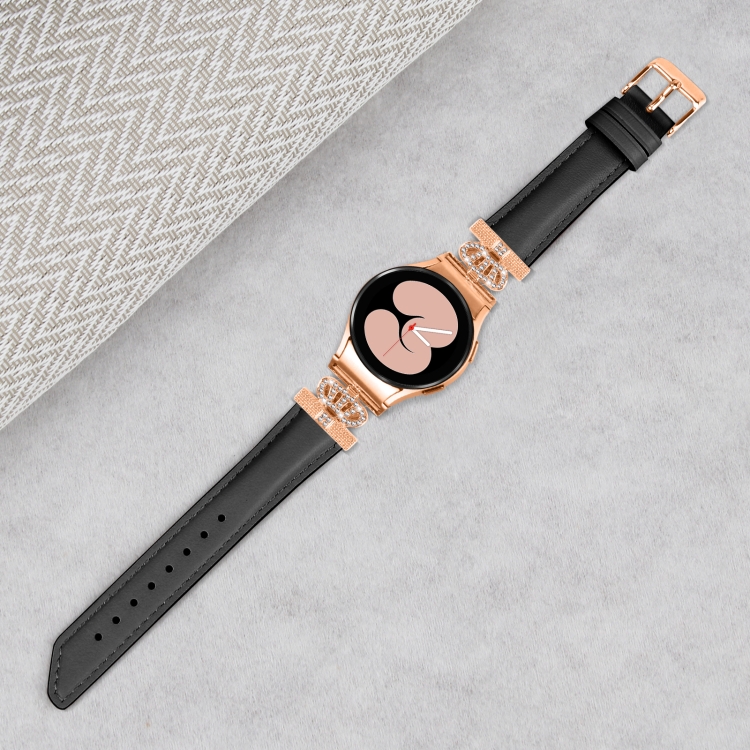 Correa de Cuero para Samsung Galaxy Watch6/6 En Forma de D con Corona Clásica (Oro Rosa Negro)