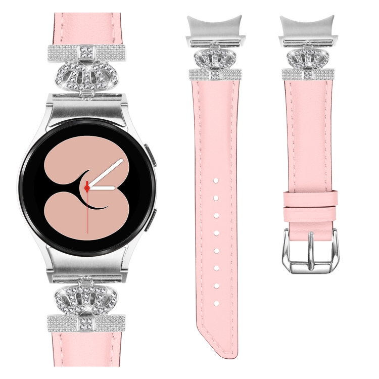 Correa de Cuero para Samsung Galaxy Watch6/6 en Forma de D con Corona Clásica (Rosa Plateado)