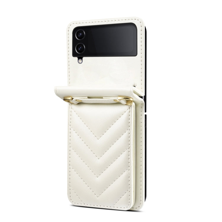 Estuche de Cuero para Samsung Galaxy Z Flip3 Plegable Rombal con Cordón Largo (Blanco)