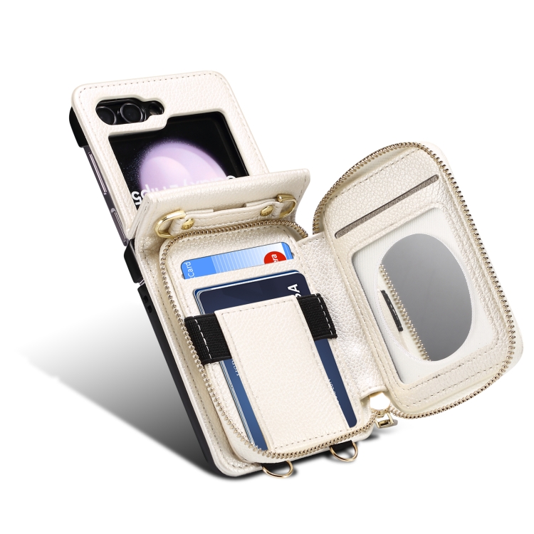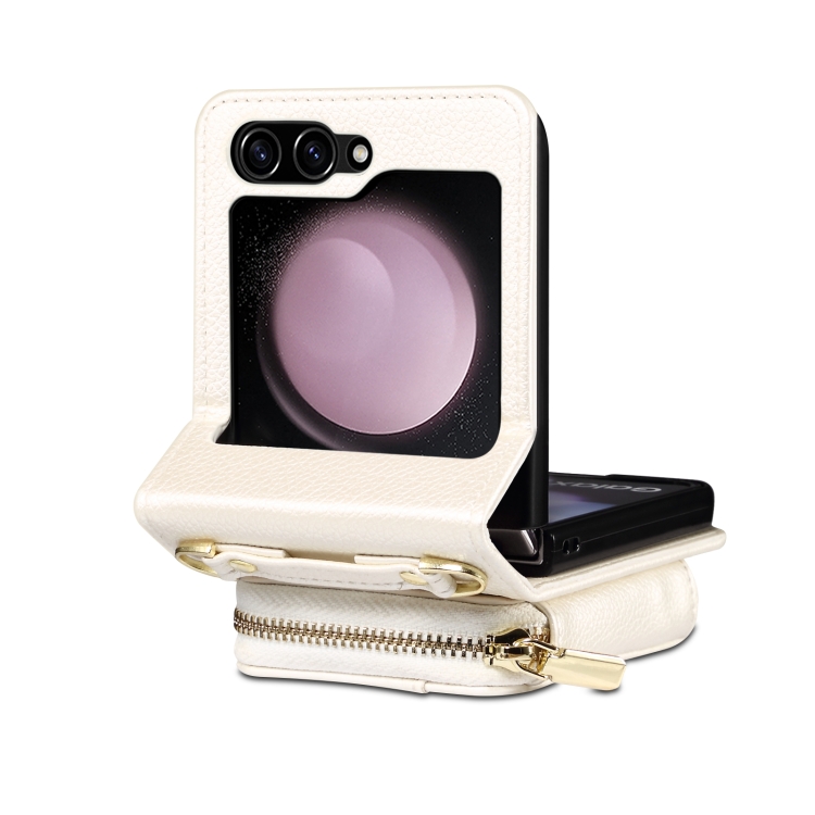 Funda de Cuero plegable para Samsung Galaxy Z Flip3 con Cordón Largo (Blanco)