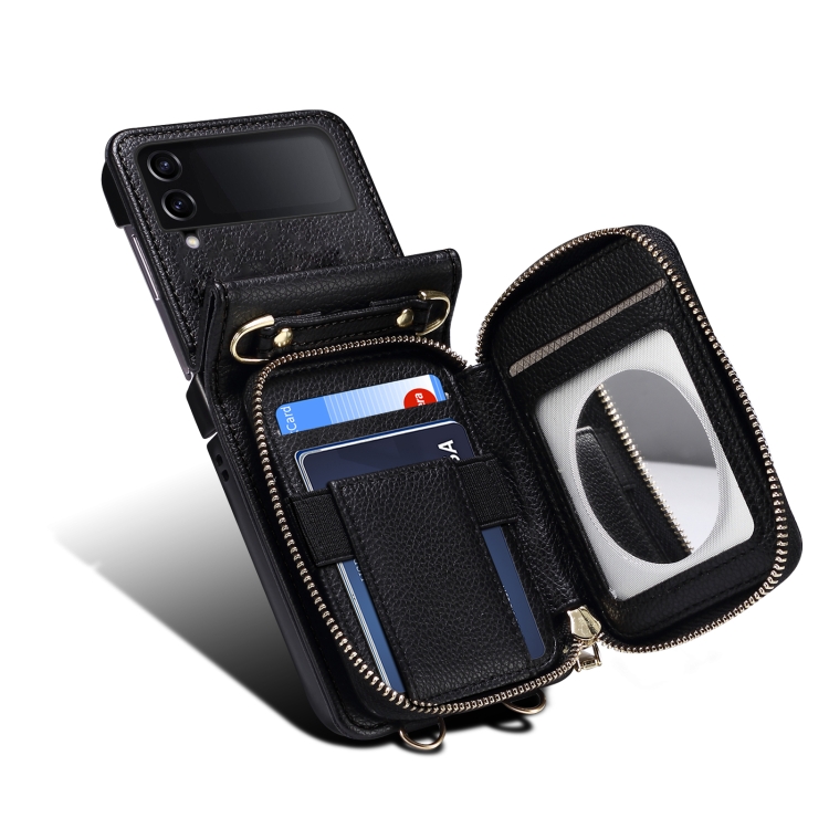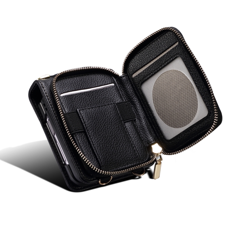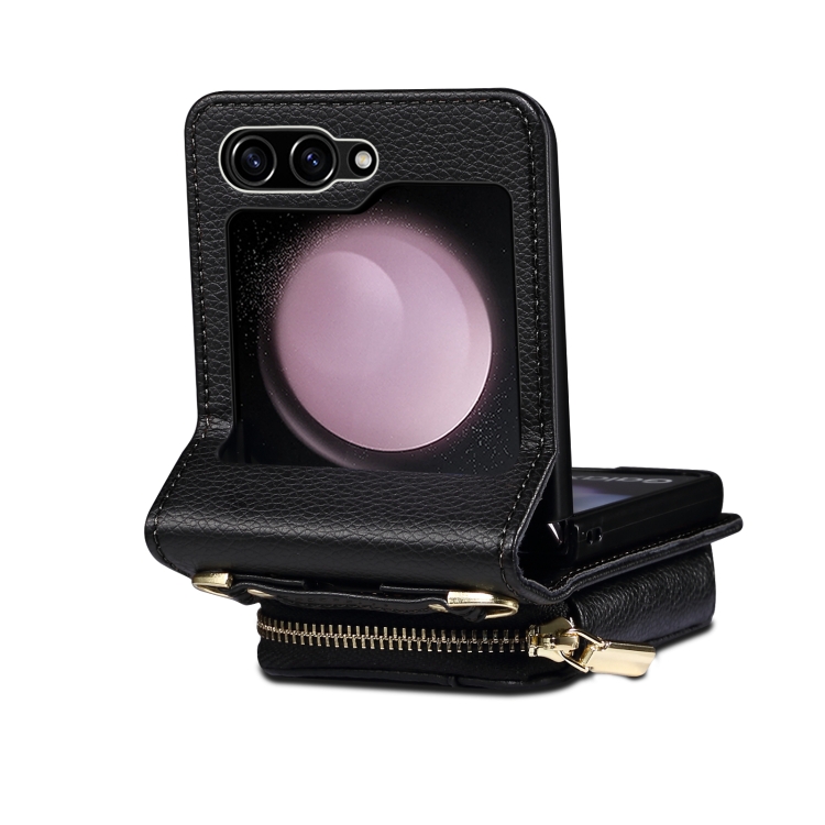 Funda para Samsung Galaxy Z Flip3 Cuero Plegable con Cordón Largo (Negro)