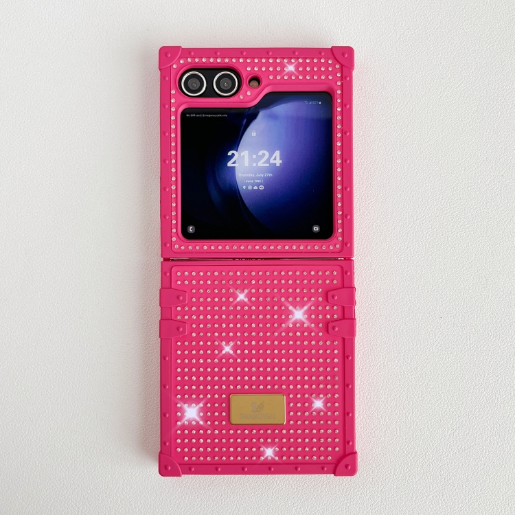 Estuche para Teléfono Samsung Galaxy Z Flip4 5G PC a Prueba de Golpes con Diamantes Completos y Logotipo de Cisne (Rojo Rosa)