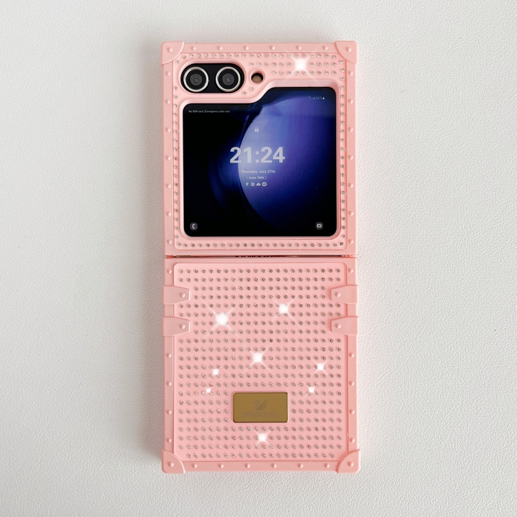 Estuche para Teléfono Samsung Galaxy Z Flip4 5G PC a Prueba de Golpes con Diamantes y Logotipo de Cisne (Rosa)