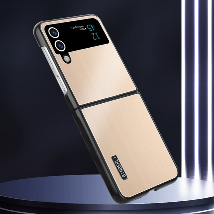 Estuche para Teléfono Samsung Galaxy Z Flip4 Aleación de Aluminio Cepillado Híbrido a Prueba de Golpes (Dorado)