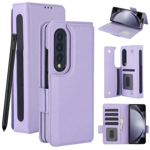 Estuche para teléfono Samsung Galaxy Z Fold3 cuero plegable multifuncional ranura para bolígrafo (Púrpura)