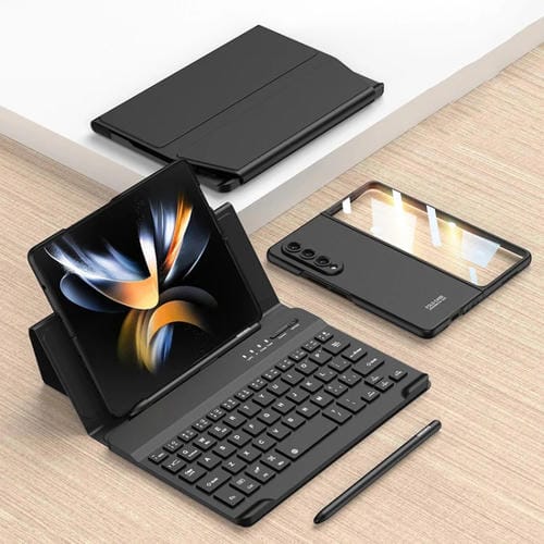 Estuche de Cuero para Samsung Galaxy Z Fold4 Gkk con Teclado Bluetooth Plegable Magnético y Bolígrafo + Estuche para Teléfono (Negro)