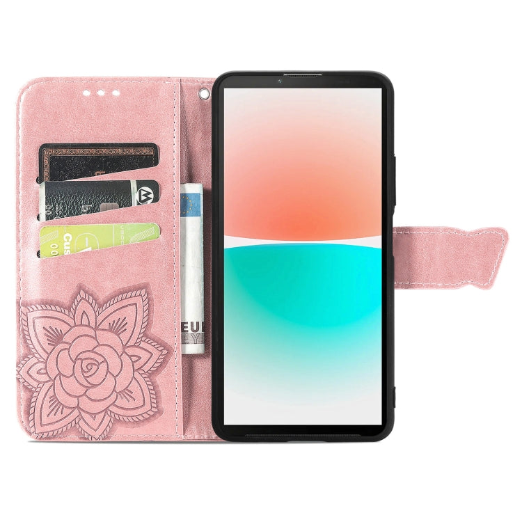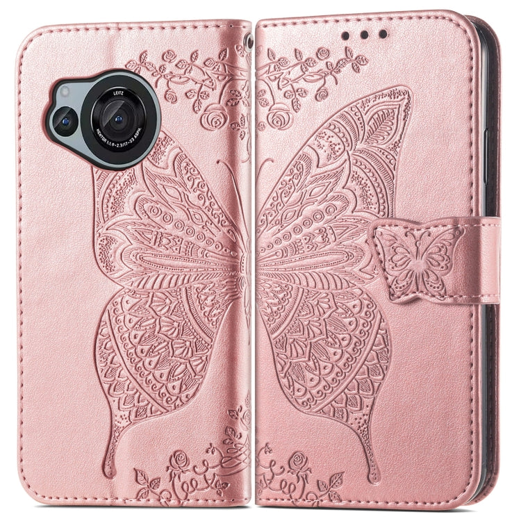 Estuche para Sharp Aquos R8 Butterfly Love Flower de Cuero En Relieve (Oro Rosa)
